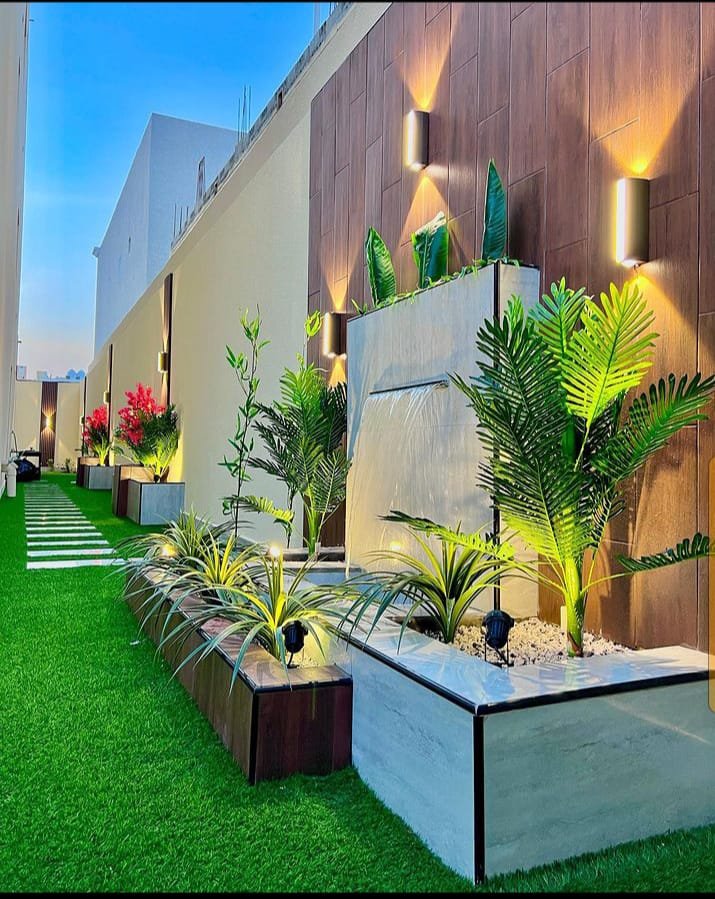 نوفر حلول ري حديثة وإضاءة خارجية مدروسة تسهم في الحفاظ على النباتات وتبرز جمال الحديقة ليلًا، مع تقليل استهلاك المياه والطاقة.