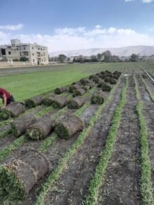 2. الفرش بالعشب المدلفن (Turfing / Sodding)