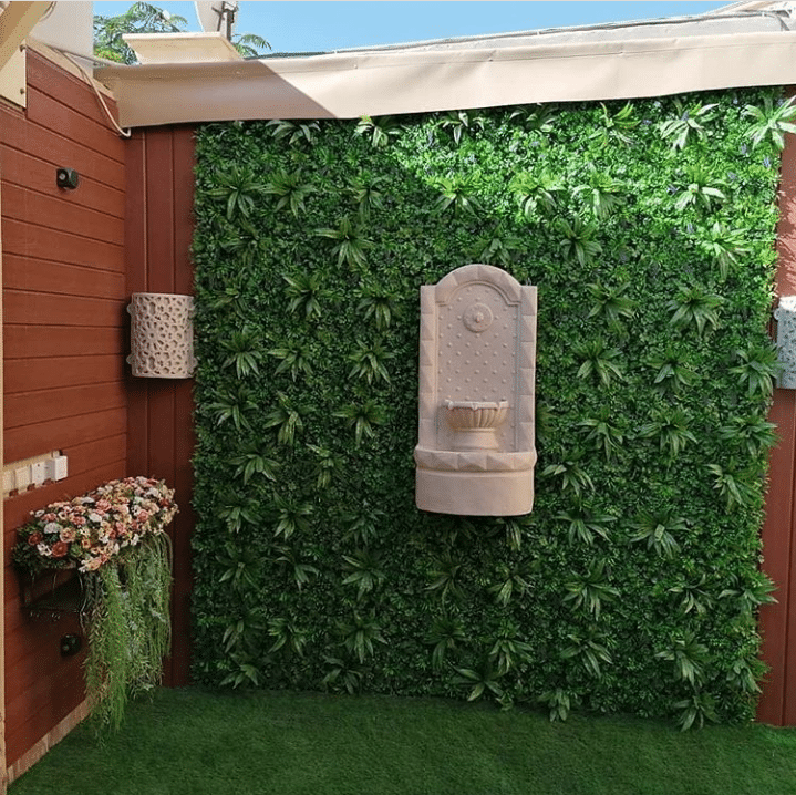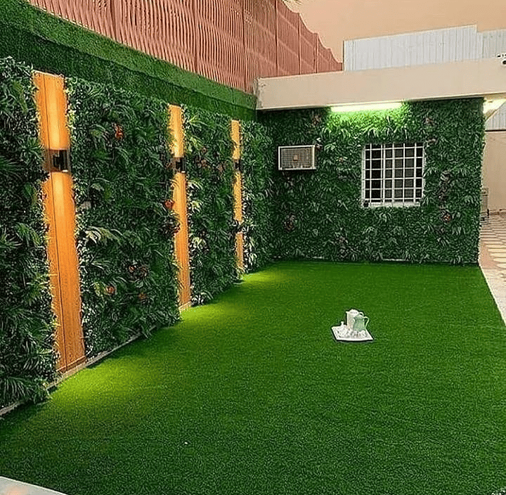 سهولة الصيانة: على عكس العشب الطبيعي الذي يتطلب الكثير من الرعاية والاهتمام، العشب الجداري لا يحتاج إلى سقاية مستمرة أو تقليم. كما أنه مقاوم للعوامل الجوية ويظل أخضر طوال العام.